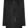 A FULLY LINED OVERSIZE JACKET WITH JET POCKETS, BUTTON & LOOP CLOSURES WITH SHOULDER ACCENTS.