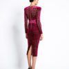 Introducing the SALVATION dress, an absolute must-have for any fashion-forward woman. CRAFTED FROM A VELVET KNIT EXCLUSIVE ZHIVAGO FABRIC WITH LASER CUT SUTTLE GOLD DETAILS, this dress is designed to offer both comfort and style. Crafted with meticulous attention to detail, it showcases THE SIGNATURE SNATCHED SATIN STITCHED WAISTBAND, GIVES AN HOURGLASS SILHOUETTE WITH A SHEER SKIRT PANEL AND BACK BODICE AND SLEEVE. Whether you’re heading out for a casual outing or a special occasion, the SALVATION dress is versatile enough to meet all your fashion needs. Elevate your wardrobe with this statement piece that exudes confidence and elegance. Experience the ultimate blend of comfort and style with the SALVATION dress.