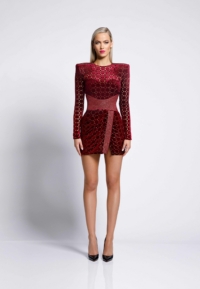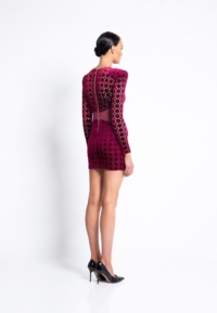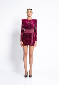 LASER CUT GILDED VELVET MINI DRESS WITH: