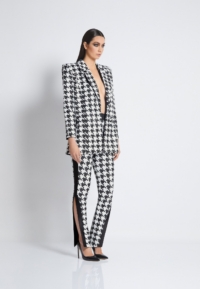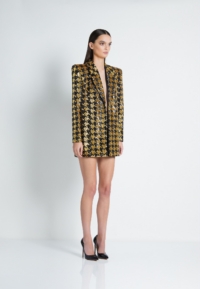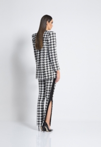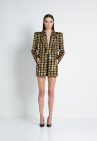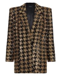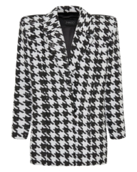 A FULLY LINED HOUNDSTOOTH OVERSIZED BLAZER WITH METAL BUTTONS AND ACCENTUATED SHOULDERS. ZHIVAGO FABRIC.
