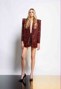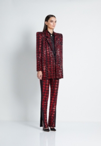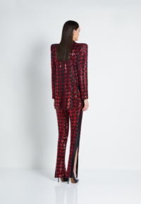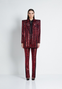 THIS JACKET IS MADE OF A SEMI STRETCH SEQUINNED FABRIC WHICH ALLOWS FOR SOME FLEXIBILITY WITH SIZING. THE JACKET IS AN OVERSIZE FIT.