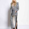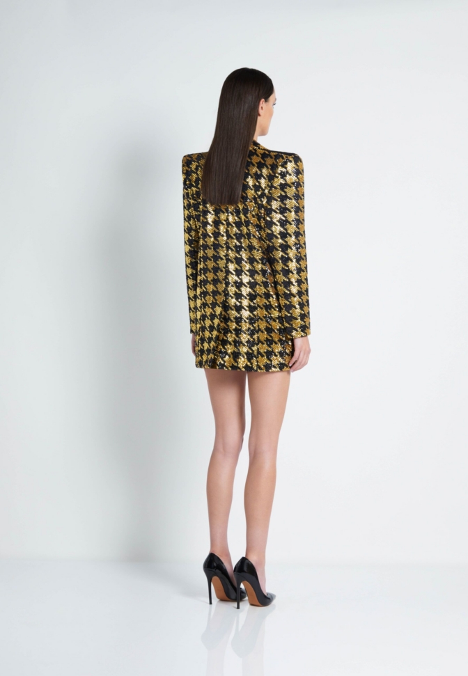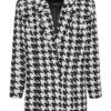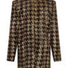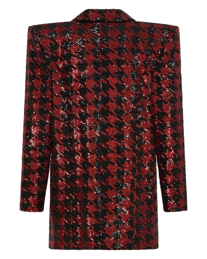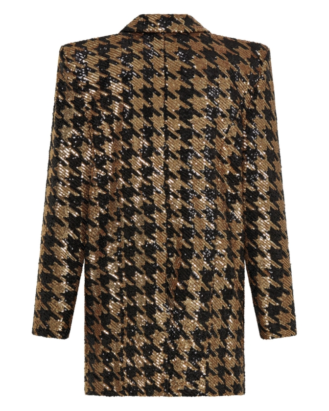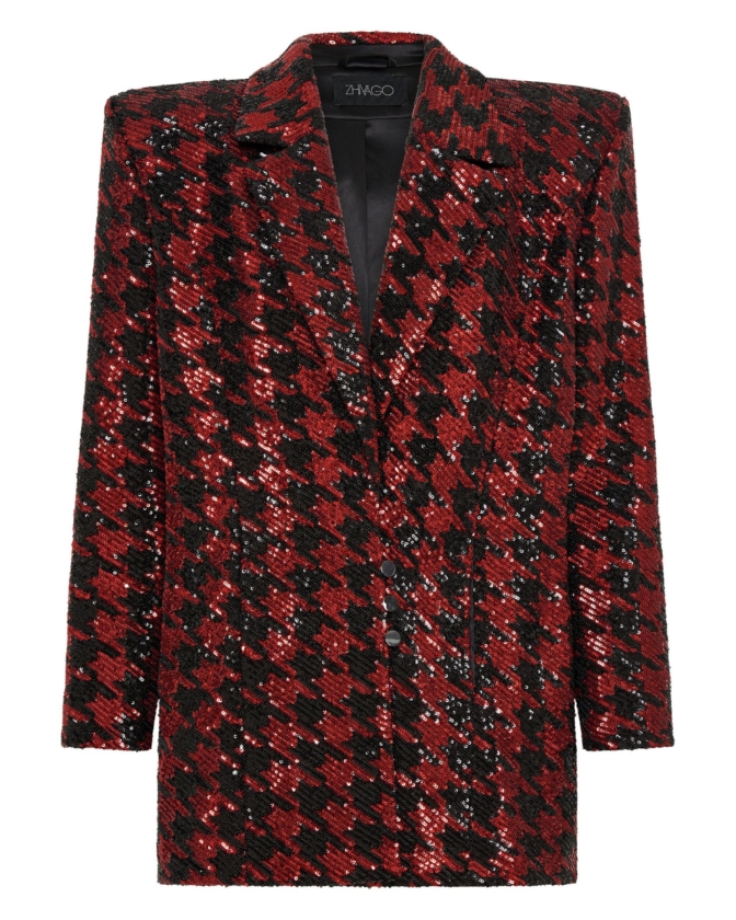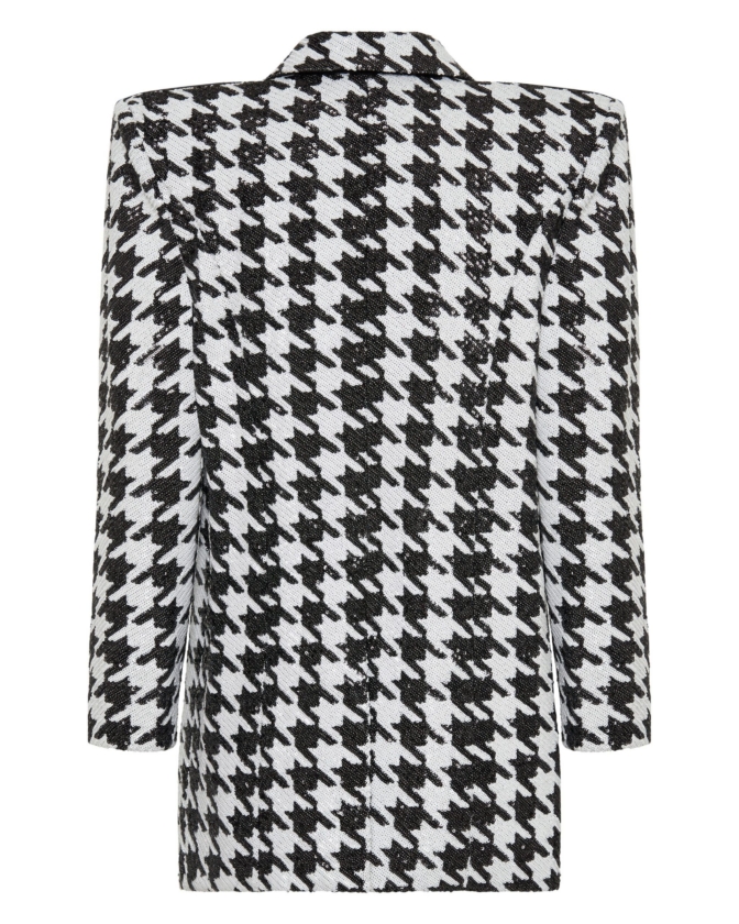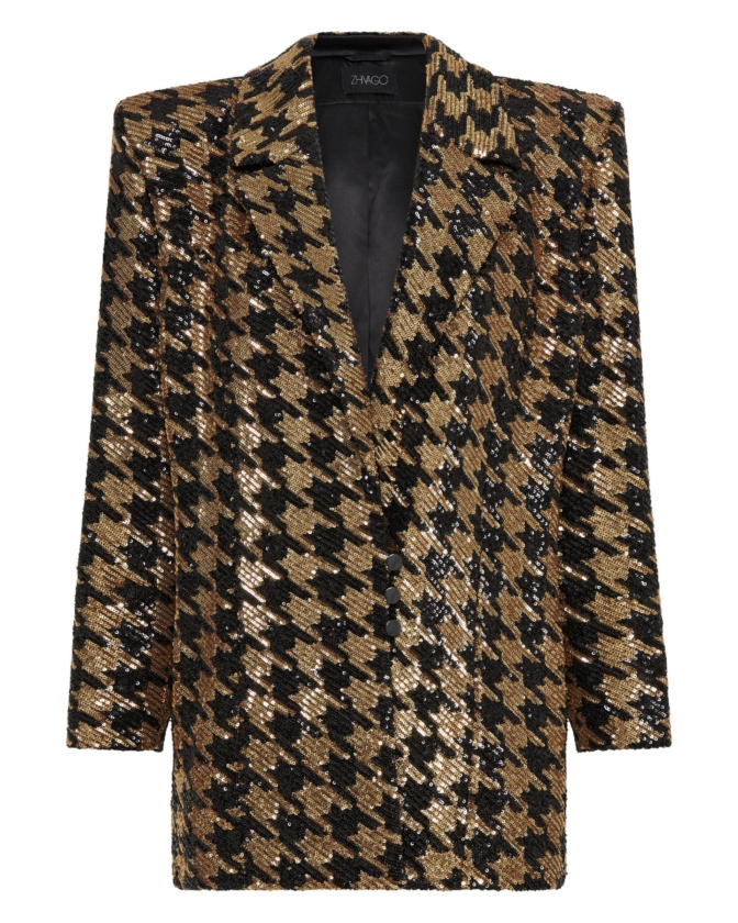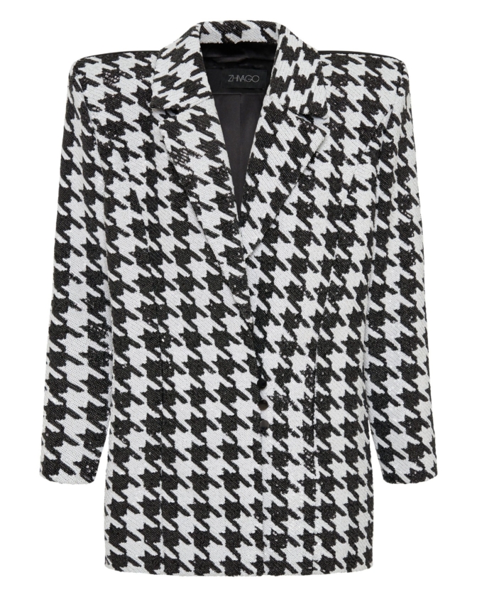 A FULLY LINED HOUNDSTOOTH OVERSIZED BLAZER WITH METAL BUTTONS AND ACCENTUATED SHOULDERS. ZHIVAGO FABRIC.