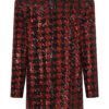 THIS JACKET IS MADE OF A SEMI STRETCH SEQUINNED FABRIC WHICH ALLOWS FOR SOME FLEXIBILITY WITH SIZING. THE JACKET IS AN OVERSIZE FIT.