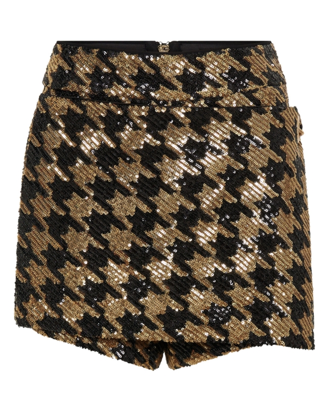 A FULLY LINED HOUNDSTOOTH SEQUIN SKORT WITH CHAIN DETAIL. ZHIVAGO FABRIC.