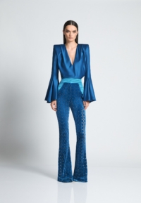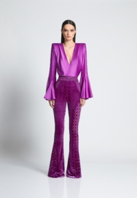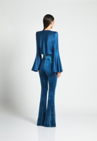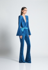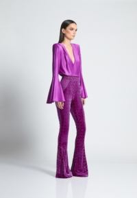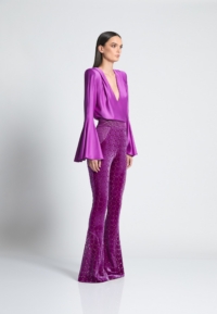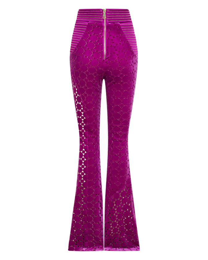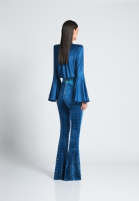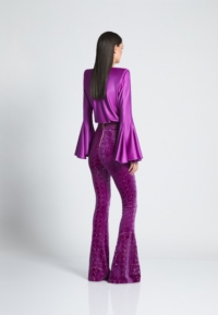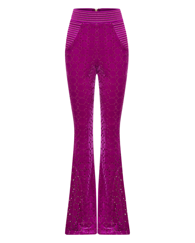Introducing the CAVALIER pants, a versatile addition to any wardrobe. Crafted from a high-quality velvet knit material with laser cut Suttle gold detailing, these women’s pants provide a comfortable and flattering fit that you’ll love the cinched waist and flared leg that balance the silhouette to perfection. Designed to be both stylish and practical, these pants are perfect for any occasion. Whether you’re heading to the office or going out with friends, the CAVALIER pant is sure to make a statement. This product is a testament to our commitment to quality and attention to detail. Don’t miss out on adding these must-have pants to your collection.
