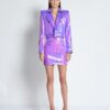 A PATENT PEDNING CHAMELEON “MOOD” SEQUIN FULLY LINED CROP LENGTH JACKET WITH BUTTON DETAILS TO LAPEL, ZIP FEATURES TO SLEEVES AND SHOULDER ACCENTS.