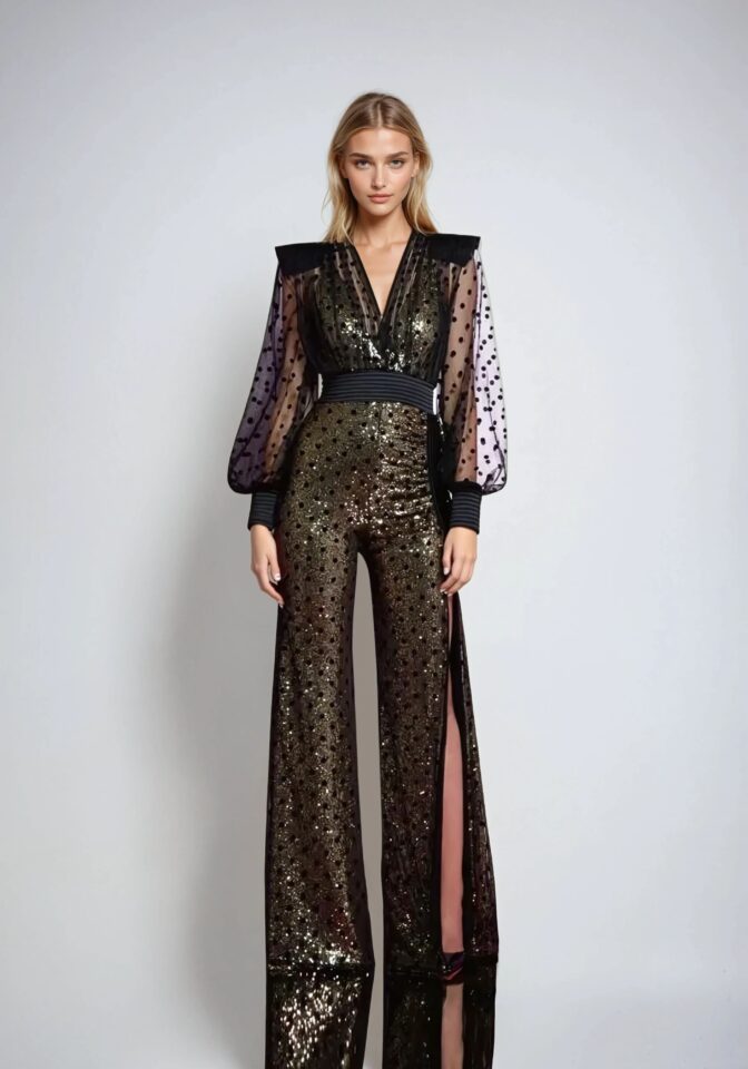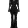 YOU SHOULD HAND WASH THIS JUMPSUIT DUE TO THE DELICATE NATURE OF THE MESH AND THE APPLICATION OF THE CRYSTALS, IT IS USUAL TO NOTICE A FEW STRAY CRYSTALS COME LOOSE AFTER WEARING OR WASHING, THIS WON’T AFFECT THE OVERALL APPEARANCE OF THE JUMPSUIT.