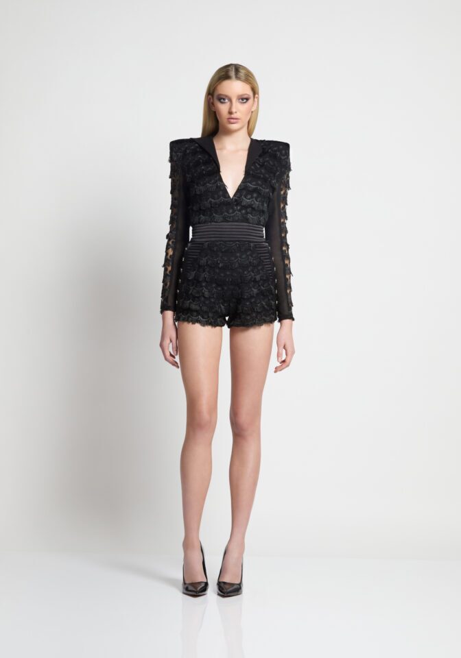 YOU SHOULD HAND WASH THIS PLAYSUIT DUE TO THE DELICATE NATURE OF THE MESH AND THE APPLICATION OF THE CRYSTALS, IT IS USUAL TO NOTICE A FEW STRAY CRYSTALS COME LOOSE AFTER WEARING OR WASHING, THIS WON’T AFFECT THE OVERALL APPEARANCE OF THE PLAYSUIT.