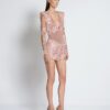 YOU SHOULD HAND WASH THIS PLAYSUIT DUE TO THE DELICATE NATURE OF THE MESH AND THE APPLICATION OF THE CRYSTALS, IT IS USUAL TO NOTICE A FEW STRAY CRYSTALS COME LOOSE AFTER WEARING OR WASHING, THIS WON’T AFFECT THE OVERALL APPEARANCE OF THE PLAYSUIT.
