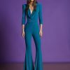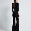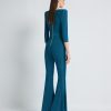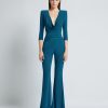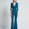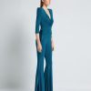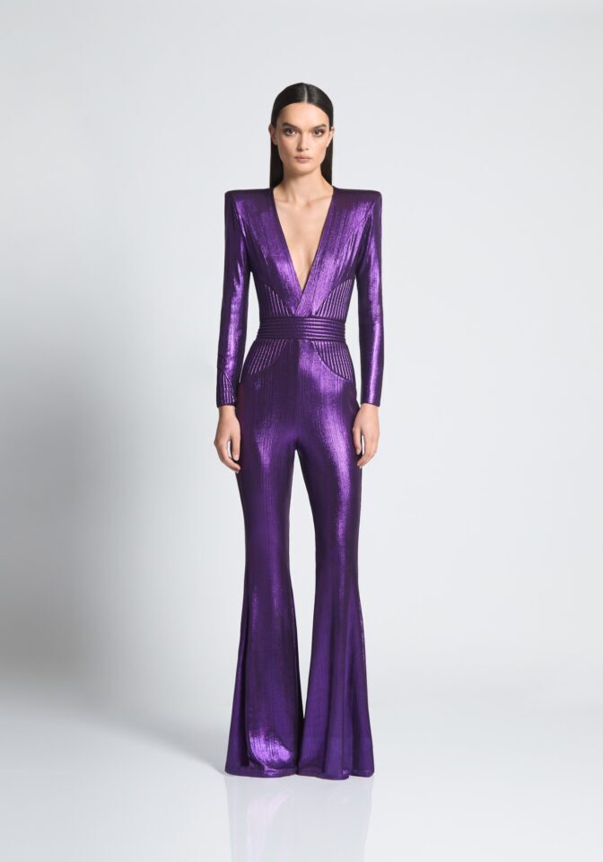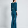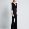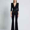 A JERSEY JUMPSUIT WITH COWL NECKLINE, STITCHED SATIN POCKET AND WAIST & SHOULDER ACCENTS