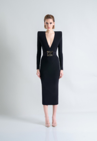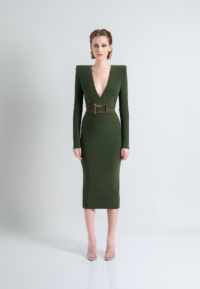 THIS DRESS IS AN EASY FIT AROUND THE WAIST WITH FRONT WAIST BUCKLE CLOSURE.