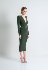 A JERSEY EASY FIT MIDI DRESS WITH BUCKLE WAIST DETAIL AND SHOULDER ACCENTS