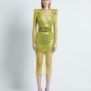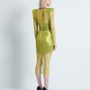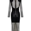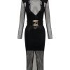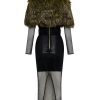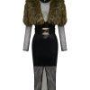 A STRETCH WIDE MESH DRESS WITH SEPARATE SLIP, BUCKLE TO WAIST & DETACHABLE FUR