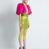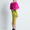 THE SYNTHETIC FAUX FUR CAPE IS REMOVABLE AND LINED IN SATIN.