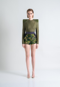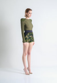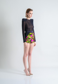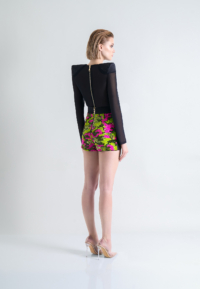 *ZHIVAGO FABRIC* SEQUIN HIGH WAISTED SHORTS WITH STITCHED SATIN WAISTBAND