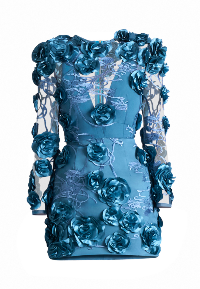 A PARTIALLY LINED FLORAL MESH LACE MINI DRESS