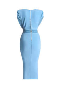 Side splits allow movement with intention, creating a silhouette that feels both controlled and effortless as you walk. The result is a dress that holds presence through quiet confidence and subtle architectural poise.