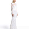 - Full-length gown with intricate lace construction