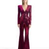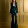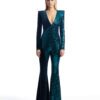 AN EASY FIT, FULLY LINED SEQUIN JUMPSUIT WITH VELVET PANELS