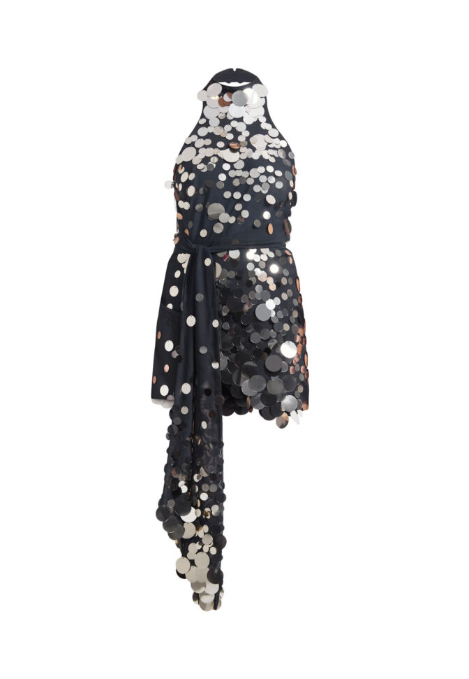 A halter silhouette designed for the night, finished in light-responsive sequins that move with intention. The Dream of Light Mini Dress is made for quiet entrances and unforgettable moments.