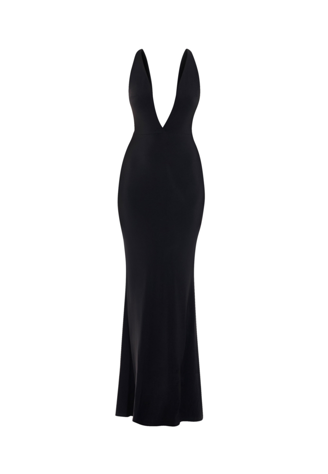 The View 2-PC Gown combines sheer mesh panels with a fully tailored slip foundation to create both openness and coverage in thoughtful balance. The mesh paneling frames the silhouette with architectural intention, while the long slip provides smooth, confident coverage that enhances wearability without inhibiting movement.
