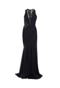 - Sleeveless mesh-paneled gown