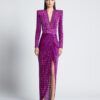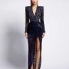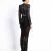 Introducing the SHADOW LOUNGE gown, a luxurious addition to our collection of gowns. Crafted from a velvet knit exclusive ZHIVAGO fabric with laser cut Suttle gold details, this women’s gown offers unparalleled comfort and style. It showcases exquisite craftsmanship and attention to detail the snatched waistband gives an hourglass silhouette with signature stitched satin paneling. Whether you’re heading out on the town or preparing for a special occasion, the SHADOW LOUNGE gown is designed to make you feel confident and effortlessly elegant. With its sleek silhouette and soft fabric, this gown is perfect for those who appreciate both fashion and comfort. Automatically elevate your look with the SHADOW LOUNGE gown and experience unmatched quality and sophistication.