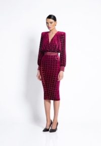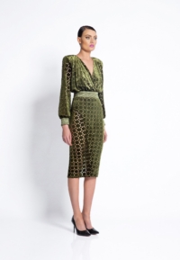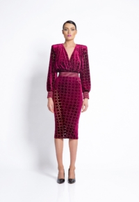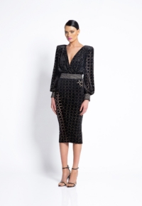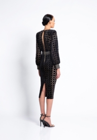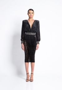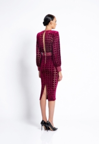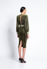 LASER CUT GILDED VELVET MIDI DRESS WITH: