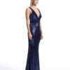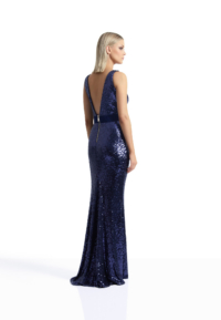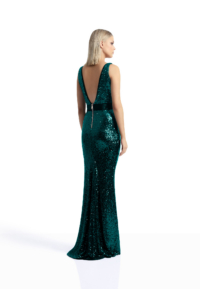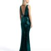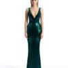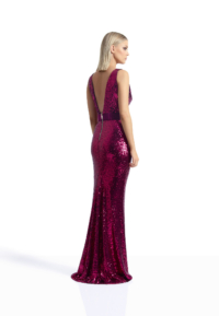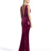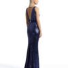 SLEEVELESS STRETCH SEQUIN GOWN WITH STITCHED VELVET PANELS AND WAISTBAND