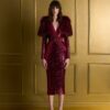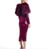 A STRETCH SEQUIN MIDI DRESS WITH STITCHED VELVET NECKBAND, WAISTBAND, POCKET FACINGS & DETACHABLE FUR