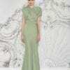 THE LENGTH OF THE DRESS IS FOR 170 CM HEIGHT WEARING 3 INCH HEELS. IF YOU ARE SHORTER THAN THIS YOU MAY NEED TO SHORTEN THE DRESS WHICH CAN BE DONE EASILY WITH YOUR LOCAL TAILOR. YOU MUST ENSURE THAT THE LINING LAYERS ARE KEPT SEPARATE FOR THE SKIRT TO DRAPE EFFECTIVELY. IF YOU ARE TALLER THAN THIS, WE RECOMMEND WEARING SHORTER HEELS.