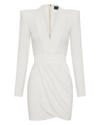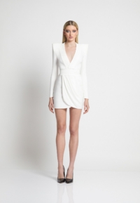 THE SKIRT IS A MINI LENGTH DRAPED STYLE. IT WILL SUIT MOST BODY SHAPES. THE ACCENTED SHOULDERS MAKE THE STRUCTURED WAIST LOOK EVEN SMALLER, GIVING YOU MAXIMUM CURVES. THIS STYLE IS SUITABLE FOR ALL BUST SIZES.