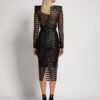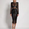 STRIPED PVC & MESH MIDI SKIRT WITH STITCHED SATIN PANELLING