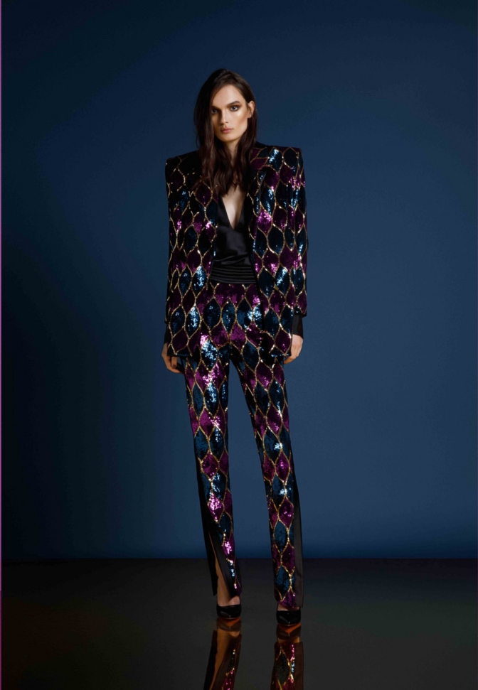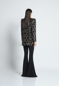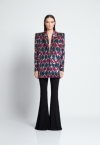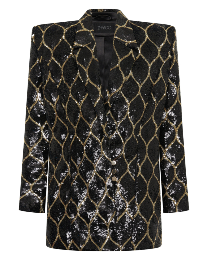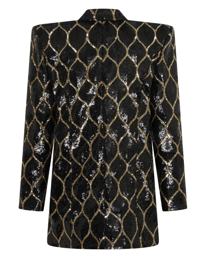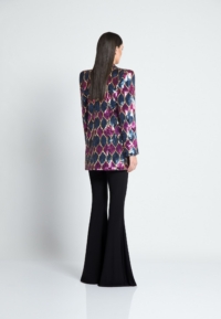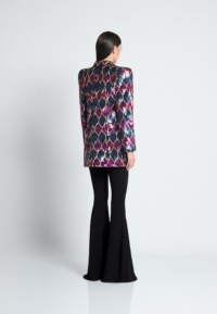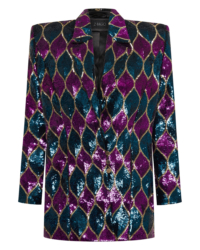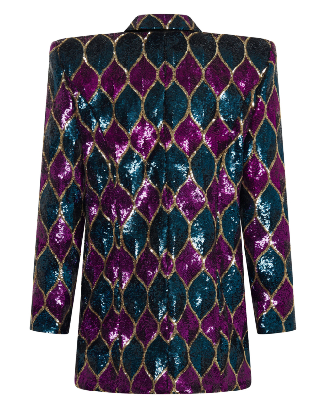 THIS JACKET IS MADE OF A SEMI-STRETCH SEQUINNED FABRIC WHICH ALLOWS FOR SOME FLEXIBILITY WITH SIZING. THE JACKET IS AN OVERSIZE FIT.
