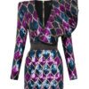 Introducing the MEAN STREETS mini dress, a stylish addition to our Dresses collection that is sure to turn heads. Made from an exclusive sequin knit material with exaggerated shoulder detail, this dress offers a comfortable fit and a sleek silhouette. Designed with utmost attention to detail, it is perfect for both a night on the town and special occasions. The MEAN STREETS mini dress is a true embodiment of contemporary fashion a piece of art, reflecting the modern woman’s confidence and style. Add this versatile piece to your wardrobe and effortlessly elevate your look. Crafted with care, it meets the highest standards of quality and durability. Shop now and experience the perfect blend of comfort and fashion with the MEAN STREETS mini dress.
