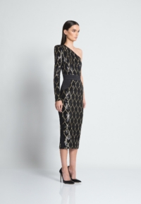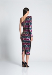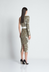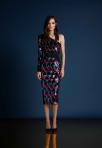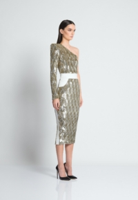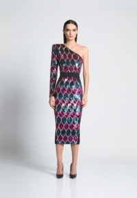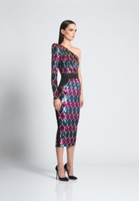 THIS DRESS IS MADE FROM AN EXCLUSIVE TEARDROP STRETCH SEQUINNED FABRIC WHICH ALLOWS FOR SOME FLEXIBILITY WITH SIZING. THE