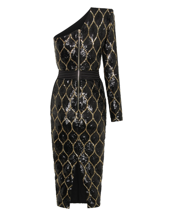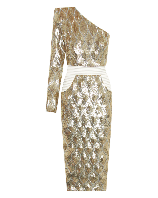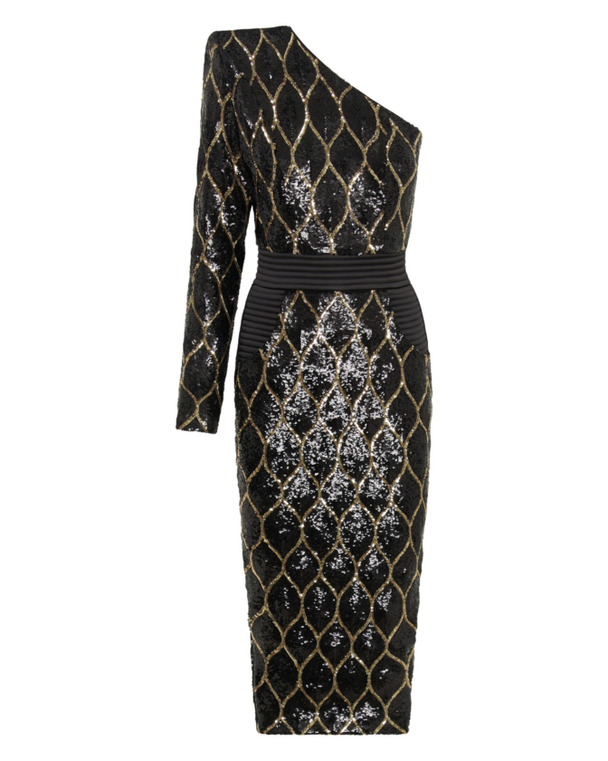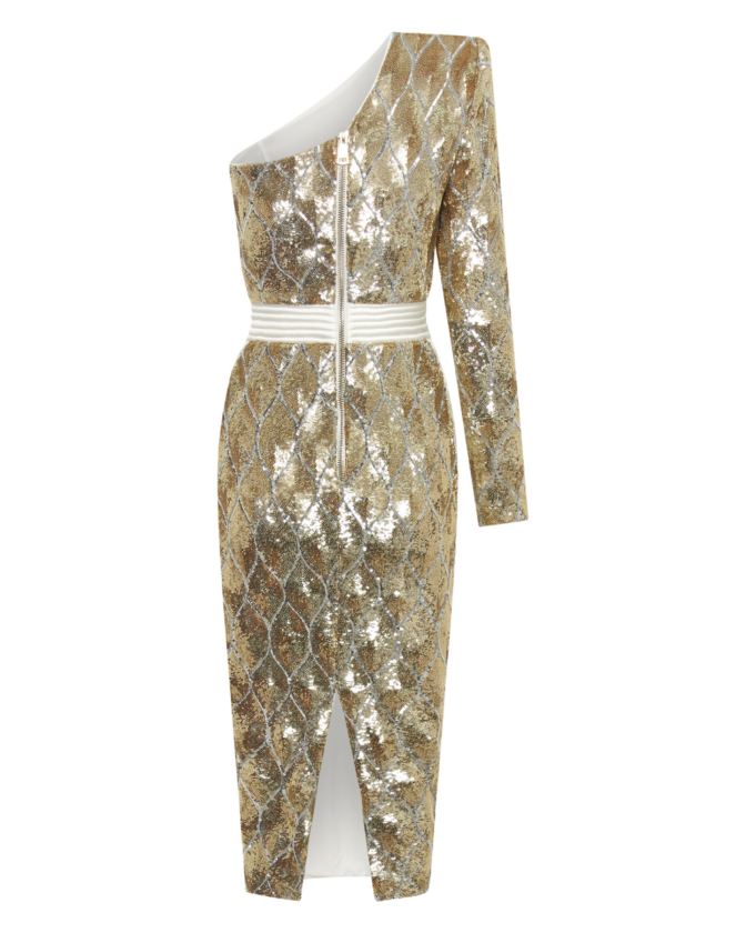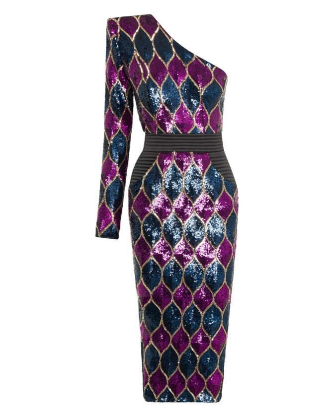 THIS DRESS IS MADE FROM AN EXCLUSIVE TEARDROP STRETCH SEQUINNED FABRIC WHICH ALLOWS FOR SOME FLEXIBILITY WITH SIZING. THE