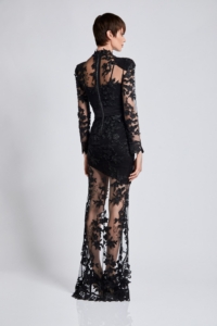 FLORAL LACE SHEER GOWN WITH TRIMMED HEM AND WAIST TIES FOR EASIER FIT. COMES WITH SLIP
