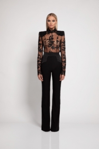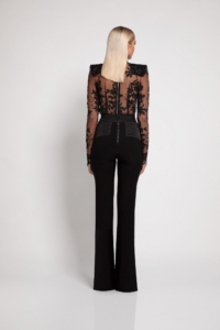 FLORAL LACE SHEER TOP WITH RAW EDGED SLEEVE HEMS & NECK, FULL LENTH BACK ZIP FOR EASIER FITTING & SHOULDER ACCENTS