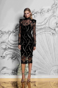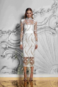 UNLINED TRIMMED LACE MIDI DRESS WITH STITCHED SATIN WAISTBAND, FAUX POCKETS AND TRIMMED LACE EDGING TO NECK, CUFFS AND SKIRT HEM. COMES WITH JERSEY SLIP