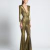 THE STRETCH METALLIC KNIT FABRIC IS VERY ACCOMMODATING TO ALL BODY TYPES, GIVEN THE FLEXIBLE NATURE OF THE FABRIC.