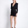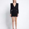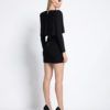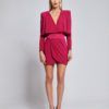FULLY LINED JERSEY MINI DRESS WITH DRAPED OVERLAY BODICE FEATURE, STITCHED SATIN PANELLING AND SHOULDER ACCENTS.