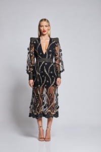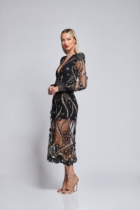 YOU SHOULD HAND WASH THIS DRESS DUE TO THE DELICATE NATURE OF THE MESH AND THE APPLICATION OF THE BEADS. IT IS USUAL TO NOTICE A FEW STRAY BEADS COME LOOSE AFTER WEARING OR WASHING, THIS WON’T AFFECT THE OVERALL APPEARANCE OF THE DRESS.